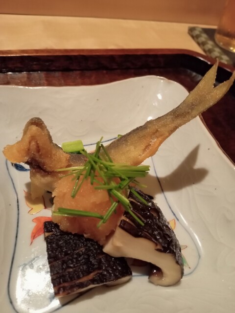 薪焼きの三重産トロサワラ、京都産丹波しめじ、栃木産きくらげ