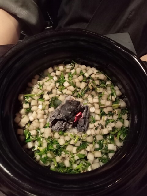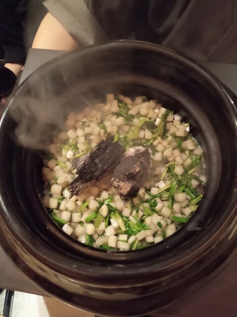 薪で焼いた大阪産淀大根、セリの炊き込みご飯