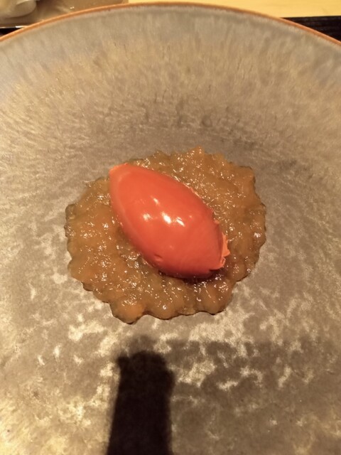 とうもろこし“雪の妖精”のムース、トマトのクリアシート