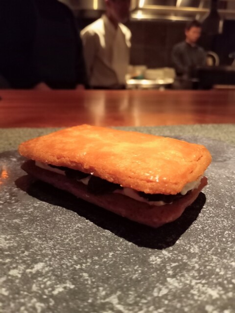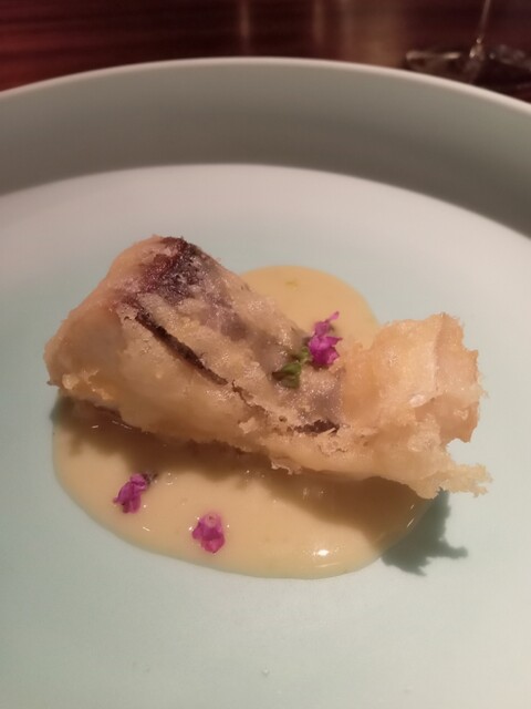さかな人 長谷川さんより 神経〆鰆のフリット、お米と中国甘酒のヴィネグレットソース、柚子胡椒
