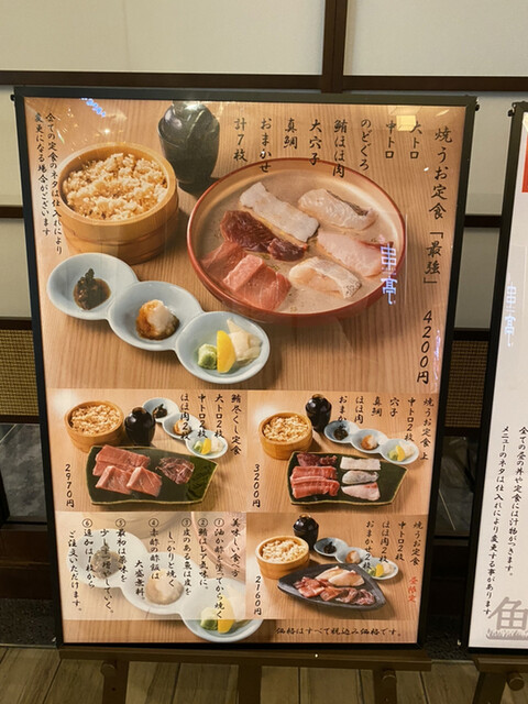 バイ貝、穴子、フグ、特上トロ、イワシ、のどぐろ