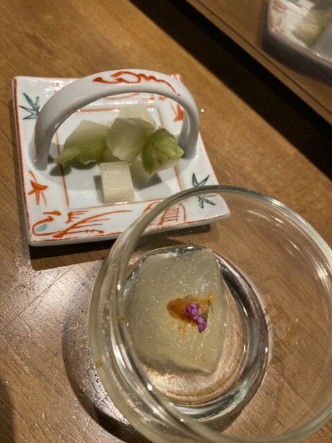 (バイ貝と胡瓜の酢物のお通し、刺身、3食丼