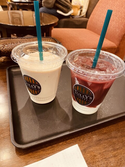 イオンモール大牟田の中に在る「タリーズコーヒー」に来てみた! イオンモール内の西側スペースのフードコート前に位置する「タリーズコーヒーイオンモール大牟田店」、いつもは人気店ともあってたくさんの人で賑わっているのだが この日はカウンター前に並んでいる人達の殆んどがテイクアウトのお客の様で 席選びをする私にとっては大変ツイていた! 周りにお茶をする人があまり居ないようなスペースを見付け陣取った。 カウンターで「エスプレッソシェイク」と「ヨーグルト&アサイードリンク」をチョイスし 受け取りカウンターでしばし待つ! 出されたドリンクを手に取りテーブル席へ移動。ゆっくりとした時間が流れ気付くといつの間にか周りの席はいっぱいになっていた! 「エスプレッソシェイク」は甘いアイスクリームをミキサーでシェイクした感じで風味はそのまんまエスプレッソで口当たりは、不思議と優しい感じがした!アタマにキィ〜ンッとするコトなく飲み干せるのが嬉しい。「ヨーグルト&アサイーは」口にした瞬間、ヨーグルトが濃厚で上の層のアサイーの酸味がスッキリ感が残り爽やかさを感じられる美味しいクセになる味の一品だった! 混雑しているフードコートを眺めながらゆったりとした気分で過ごせるコトに感謝出来たのがホントに嬉しい。