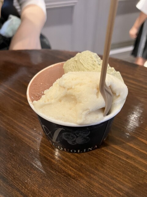 祐天寺駅前、ジェラート好きならアクセスもよく知っているだろう名店。初訪問だが季節のものが食べたくて和栗。それに合うなにかを探してノッチョーラを注文しました。食べ比べたわけではないがジェラートの味はきっと素材の個性次第で濃淡を決めているもしくは決まっていると思うが、口当たりの点においては、フワッとしているという表現ではしっくりこないほど不思議なテクスチャーで驚いた。ここに技術が見えるのかと。また季節のものを頂きにお邪魔します。