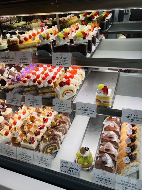 店内に入るとショーケースには彩りが美しいケーキ、スイーツ達が陳列されまるで宝石のように輝いています。