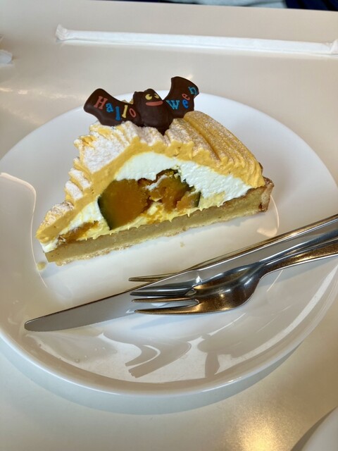 かぼちゃがドンと中に、タルト生地はしっとりサクザㇰ、口どけの良い生クリーム、かぼちゃのクリームを口に含ませ食べ進めると、かぼちゃがお目見え初めて頂くのでとても新鮮な気分で楽しみながら頂きました。