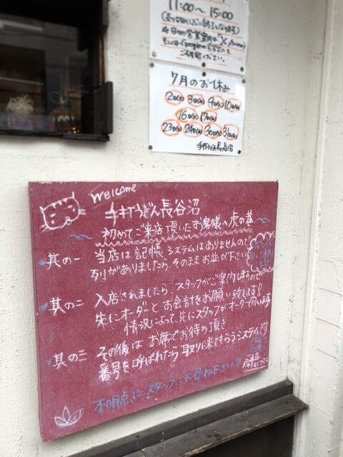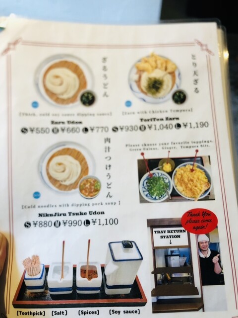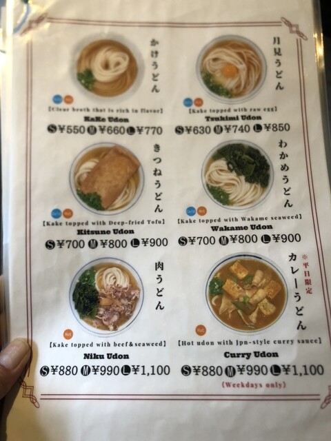 開店11:00、ほぼ同時刻に到着、本格讃岐うどんが食べられるとあって、すにで外待ち10名の行列、小雨の降る中待つこと約40分、店内の待合席に案内されメニューを確認、オーダーと会計を済ませた後、カウンター席に案内された。