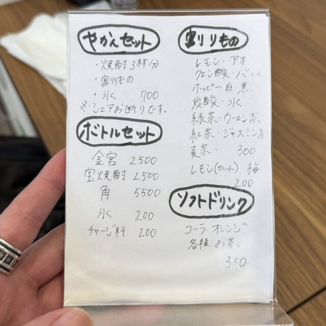 ドリンクも激安で『やかんセット』は焼酎ナカ3杯分が入って700円よ!?しかも割材と氷は無料だからガチで1杯あたり約230円飲めちゃうのよ!
