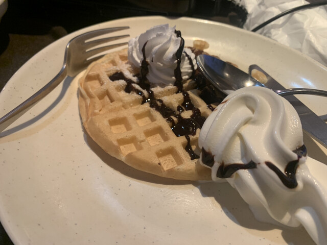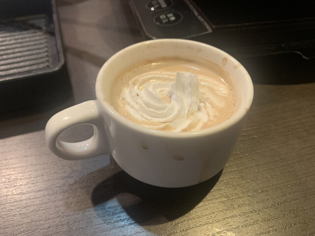 ワッフルコーナーには期間限定でホイップクリームがありましたので、ホットコーヒーにも入れてウインナーコーヒーにしました。