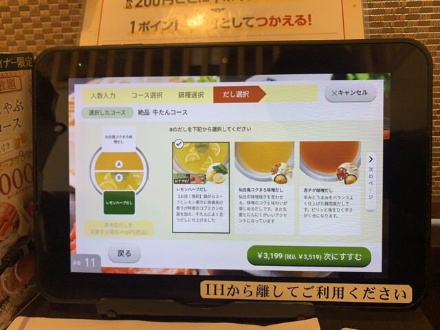 何度もきているので、4人掛けテーブルで配膳を決めて一人しゃぶしゃぶを堪能しています。