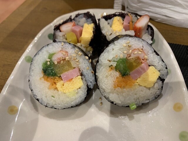 キンパは端が特に好きです。具の不揃い感がたまりません。