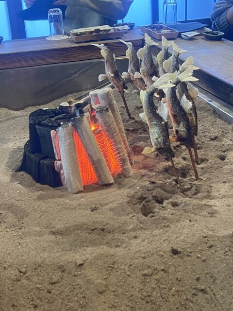 ジビエや鮎を目の前で焼き師が丁寧に最高に焼き上げてくれました。焼き師の方は東京の有名店にもいた方でした。