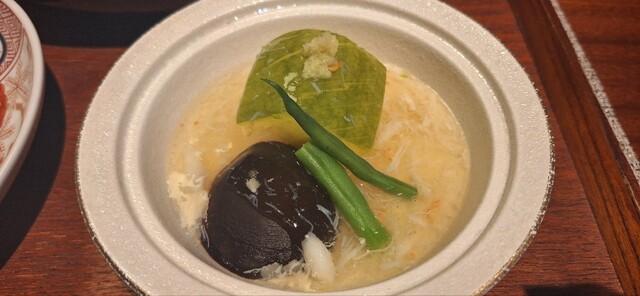 冬瓜がめちゃくちゃトロトロでやわらか〜い!!そしてカニが大量に使われていて贅沢ー!!さらに海老まで!!!カニの風味が口いっぱいに広がりとても美味しかったです。豪華だけどホッとするお料理です。