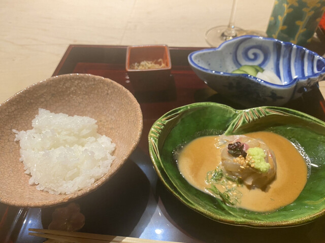 新潟産のコシヒカリの新米と名物鯛茶漬けも絶品で普段炭水化物を避けてる私もご飯を4杯おかわりしてました‥