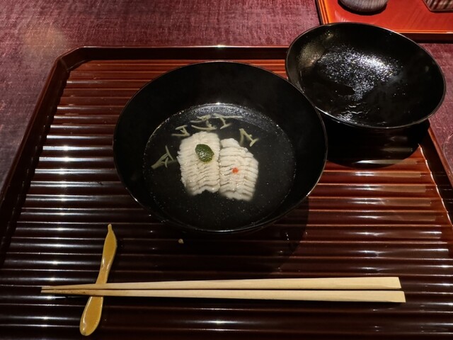 椀物は旬の鱧が玉葱の出汁でできたスープと相性抜群でとろけるような一品!