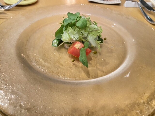 最初の前菜は琵琶湖の小鮎のフリットが印象的で、