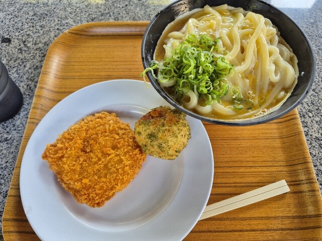 釜玉うどん発祥のお店で茹でたての麺とたまごが絶妙に絡み合う釜玉うどんとじゃがいも天とポテサラ天をいただきました。