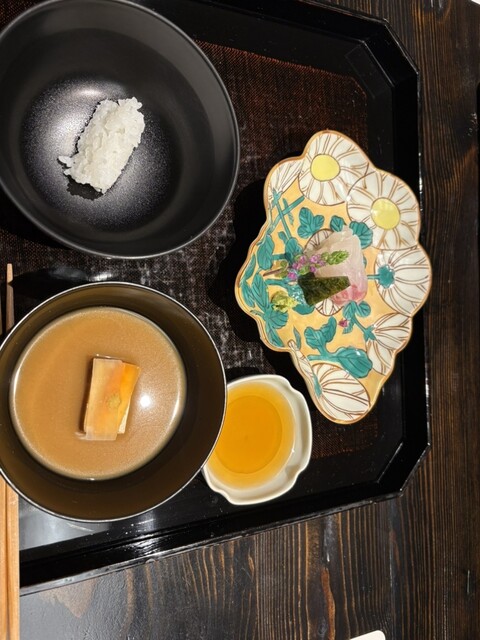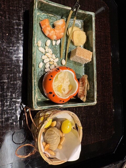 一汁三菜から始まり、お造りや煮物を楽しみ、その後、特筆すべきは地元の鮎炭火焼が絶品で、これを甲州に合わせて最高に美味しく堪能できた。普段は川魚が苦手な私も、大変美味しく頂けた。その後も甲州牛など地場食材を楽しみ、締めには鯛飯と牛そぼろご飯を共に頂いた。大変満足感が高く満腹になりました。