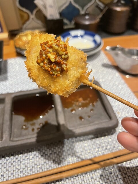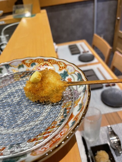 お椀で出てきたのが鰻と茄子の串揚げでこれがめっっっちゃおいしくて次も絶対食べたい〜
