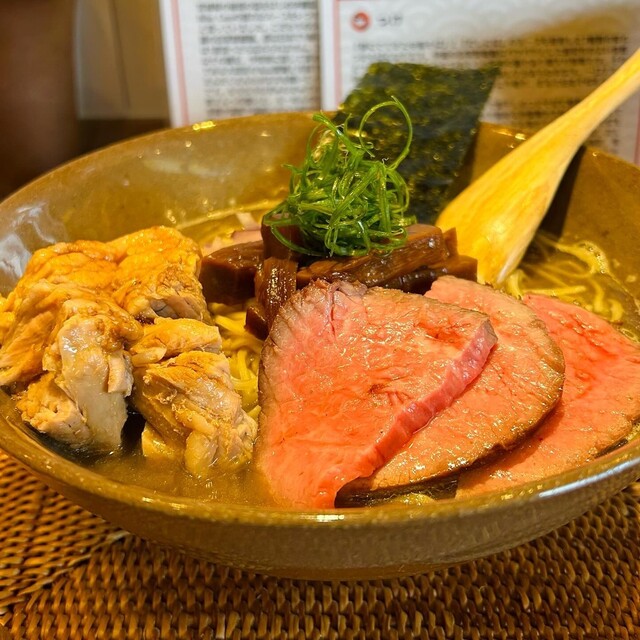 大好き極太手打ち麺とローストビーフとかメンマとか岩中豚チャーシュー!