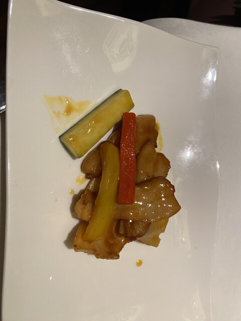 「本日の海鮮料理」は甘鯛の蒸し物。中国醤油と胡麻油の香りがよく、身がとても繊細でふわふわ。これは絶品でした。