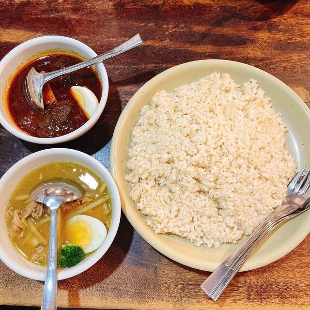 ブラックカレーとグリーンカレーの2種セットを注文。