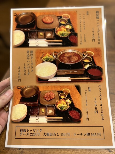 ハラミステーキと濃厚デミグラス煮込みハンバーグも人気で、チーズや大根おろしのトッピングも用意されています!カウンター席やテーブル席、掘りごたつ席があるので、1人からファミリーまで幅広く利用できるお店としてお勧めです!11:00〜21:00の通し営業が嬉しいポイントです!