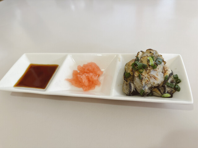 生牡蠣3個(税込450円)もみじおろし、ポン酢が付きます