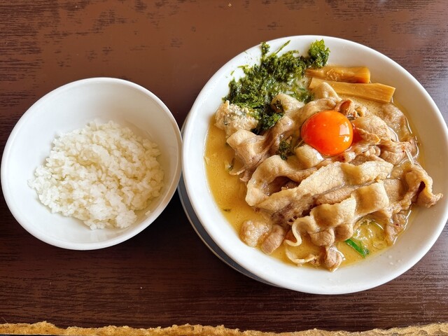 ラスト1食!ギリギリありつけました。味噌は殆ど感じられず、シチューやコーンスープの甘めの味わいです。〆は温玉バターライスにスープを掛けて!めちゃくちゃ美味しかったです。