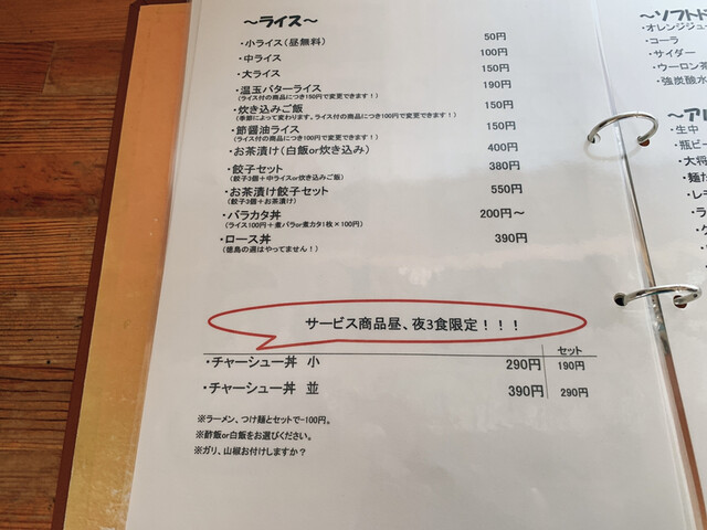 お昼の時間帯のみ小盛ライスが無料で食べられます。