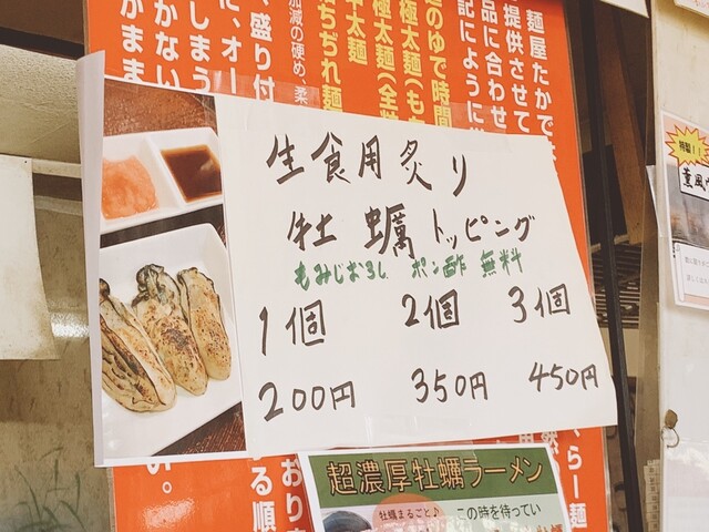 久しぶりに麺屋たかへ!限定メニューの超濃厚牡蠣ラーメン(税込1,200円)+牡蠣ご飯変更(税込150円)特製麺300gにて注文しました。