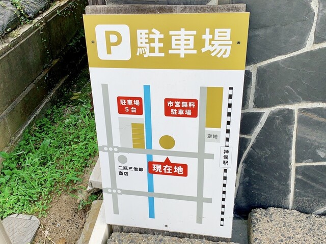 場所もなかなかの所にあり難関でした。駐車場は店前に看板がありますが、店を背に右手100mくらい脇に5台程と左手に市営駐車場があります。