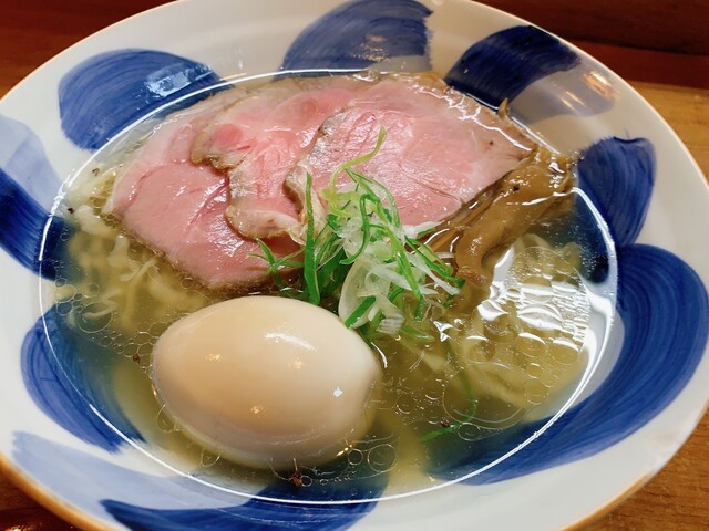 5分程で着丼です。スープの色!ここまで透き通ったスープは初めて見ました。チャーシューも彩やかなピンク色!麺は中太平打ちのピロピロ麺です。スープは薄めかな?と思いきや、深みのある優しい味わい。チャーシューは程良い弾力があり噛むと旨味がジャワーと口いっぱいに広がります。無意識にんー!んー!と声が出ます。味玉は白味にしっかり旨味が付いていて、こんな美味しい味玉は初めて食べました。ピロピロ麺は少し柔らかく感じましたが、スープにとても良く合いました。