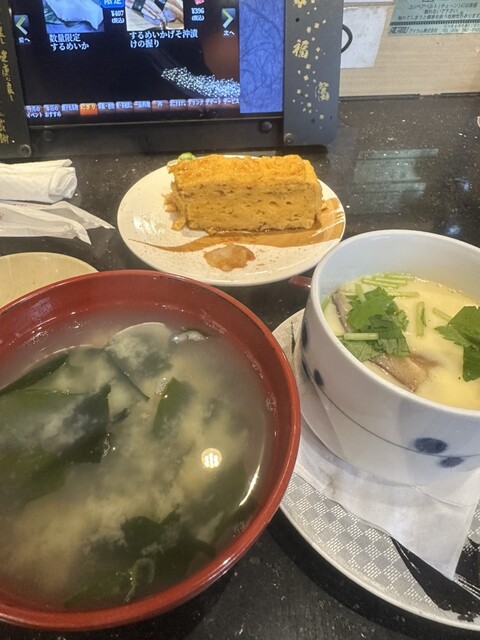 久しぶりの回転寿司に。11時の開店後すぐに入店して、まだ客入りはまばらでした。着席とほぼ同時に焼きたての厚焼きたまごのサーブがされていたので、とりあえずお願いしました。浅利とワカメの味噌汁、茶碗蒸し、まぐろ、オーロラサーモン、いかなどを頂きました。約2500円でした。体感、千代田寿司のセットになっているものの1000円未満のグレードと感じました。コスパは良かったと思います。もちろんお店ですし、スタッフさんのサービスも良いのでよいお店だなと思いました。マグロのグレードはもう少し頑張ってほしいなとそこは思いました。店内は威勢の良い声かけとテキパキしていて特に悪い点はなかったです。目の前に有名なスーパーがあり、ここがもと魚屋さんということで、よくこちらで購入するお刺身とつい比較してしまいます。よかったら帰りにちょっと鮮魚のコーナーを覗いてみてください。普段見かけないようなお魚がたくさんありますので、子ども連れの方はとても楽しめると思います。それがなければ値段なりに相応に美味しいと思います。ちなみに、回転寿司の顔、回転レーンにはなにも流れておらず、直接パネルで注文する形式でした。軽く食べて出るだけで30分程度の滞在でしたが、お客様は途切れない、そして、退店時には待ちの列がありました。それなりに人気のお店だなと思いました。ご馳走様でした。