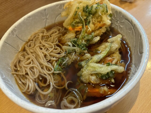 温そばかき揚げ細麺なのにコシがあるお蕎麦