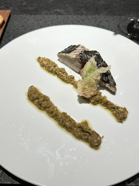 ・サワラと蕗の薹ソース 蕾菜のフリット