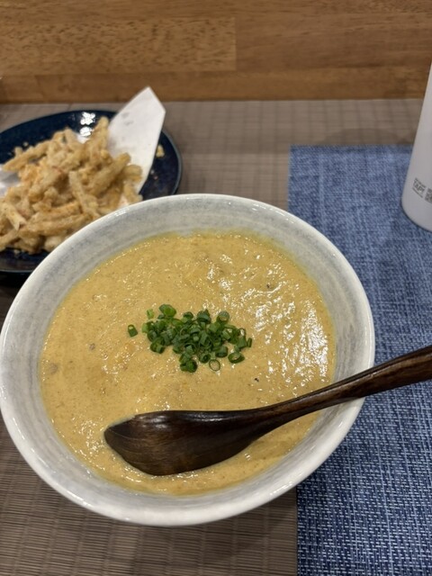 〇〆は友人はクリーミーカレーうどん(うどんはツルツルでクリーミーなピリ辛カレーうどんが