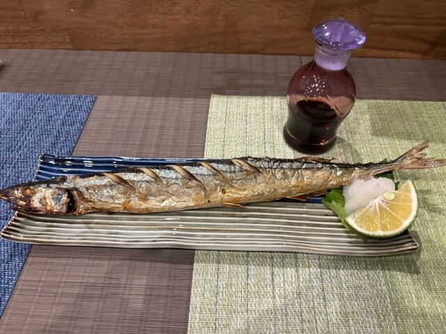 ○特大秋刀魚の塩焼き(本当に大きくて良い塩加減 パリッと焼かれていて美味しかったー)