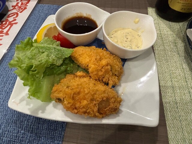 〇大粒のカキフライ(熱々で中はジューシー タルタルとソース、レモン付き これも火傷しそうなくらいの熱さで美味しかったー)