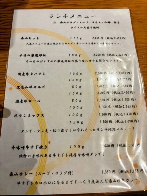 泰山ランチと牛タンミックス、そして蒸し焼きカルビ、キムチ、最後に上ハラミを注文しました