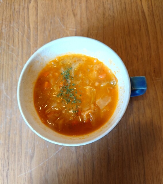 「赤魚のグリル きのこのクリームソース」は、クリームソースの中のしめじと、赤魚のバランスが絶妙で、おいしいです。サラダは、レタス・人参・紫キャベツ・大根・黄色パプリカのスライスに、フレンチドレッシングのようなドレッシングがかけられていて、おいしいです。ハンバーグの横に添えられていた「えのき茸とキャベツのつけあわせ」も、味わい深く、おいしくて、大変好みでした。中心の揚げ物は「さつま芋・かぼちゃ・なす・ズッキーニ」でした。こちらは、揚げたてではありませんでしたが、素材の味が、いかされています。ミネストローネスープには、キャベツとソーセージが入っていて、トマトをベースにした味の塩加減も、丁度よく、おいしいです。ミニグラタンは、チーズたっぷりで、ソーセージとマカロニが入っています。グラタンのベースになっているホワイトソースが、素晴らしく、おいしいです。ーーーーーーーーーーーーーーーーーー