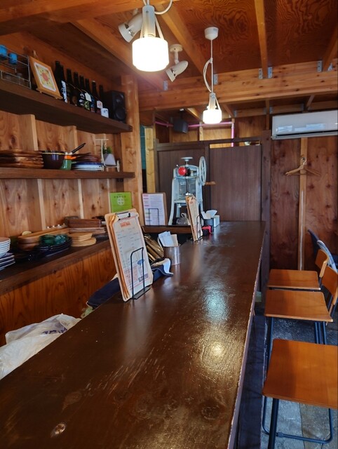2022年2月9日、14時15分くらいに、訪問しました。今日は、駐車場は、満車です。少し、待つと、お二人出てきて、駐車スペースが確保できて、停められました。中に入ると、女性二人連れ、男性二人と女性一人の3人連れの、5人いらっしゃいました。テーブルには、帰られたお客様のお膳が、そのまま、置かれています。「まだ、ランチはいただけますか」と尋ねると「大丈夫」という、お言葉に甘え、テーブル席がかたづくまで、カウンターで、待ちました。