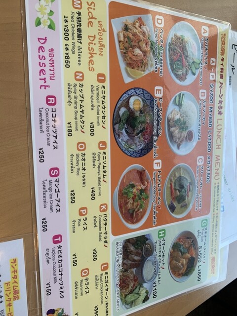 オーダーをする時、始めはすべて普通の量でお願いするつもりでしたが、「グリーンカレーをハーフサイズにした方がいいですよ。」とのアドバイスを頂き、その通りにしてちょうど良かったです。的確なアドバイスに感謝です。