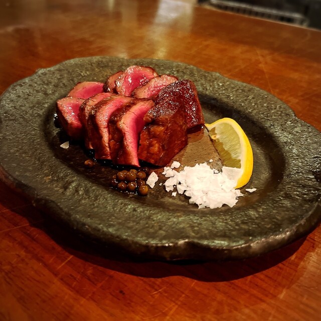 二度目の訪問。今夜もお任せ刺し盛りから、相変わらず抜群の美味しさ!すべて熟成させてたり、〆てたり、皮目あぶったり、オリジナルゴマ醤油つけてたりと一手間かけた刺身が抜群に美味い‼️穴子の天婦羅、ボタン海老とウニ、鳥レバーあぶり刺し、ハツステーキ、じゃこごはん。やはりなに食べても美味しく、今夜のボタン海老は身がねっとり濃厚で甘くウニと海苔に巻いて食べるのは最高。まなハツのステーキはこんなハツ食べたことないというもので大満足。前回のしめにたべてめちゃくちゃ美味しかった穴子飯がなくて残念