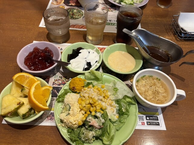 サラダバー、果物、デザート、ドリンクバー