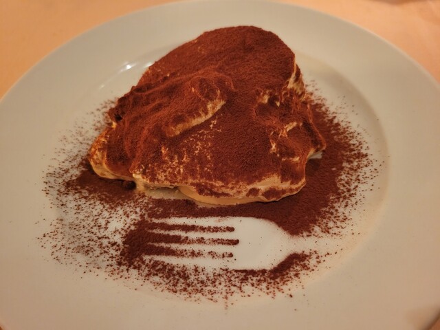ティラミスはこちらのお店が最初に日本に伝えたそうです。甘さがしつこくなく、オーソドックスな味わい。粉末部分にフォークをかたどってあってオシャレでした。