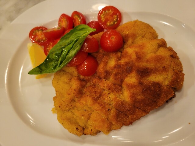 カツレツはお肉が柔らかく、味付けがしっかりついています。衣のサクサク度合いもちょうど良く、美味しかったです。添えられたチェリートマトも質が良く、熟していていいアクセントになりました。
