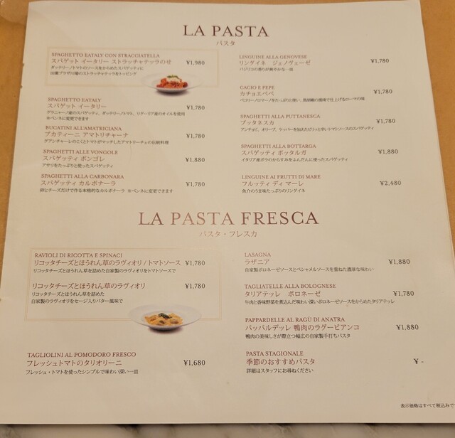 休日のランチ時とあって、レストラン内はお酒をゆっくり楽しむ女性同士、大人数で食事する年配の家族、パスタだけの短時間で店を後にする若い女性など、客層はバラエティに富んでいました。いろんな用途で使えるお店だと思います。
