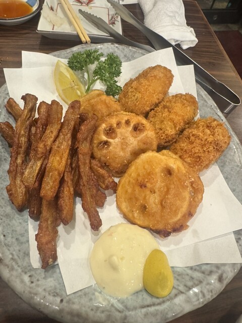 揚げ物(カキフライ、蓮根はさみ揚げ、ゴボウ)
