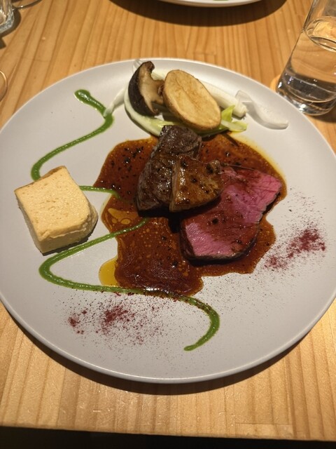 コースは写真に詳細付けました。うっかりしたのは、「牛ザブトンと鴨のパイ包み焼き フォアグラのソース」が付いておらず、スズキのパイ包みになっていたことです。牛の方を食べたかった(笑)!なお、牛肉とフォアグラのロッシーニも美味しかったです。前菜は前回食べた時の方が、もうちょい肉肉しい構成だったような気がします。飲み放題の泡、赤、白、十分に美味しく、ワインにうるさい親戚も満足して要りました。